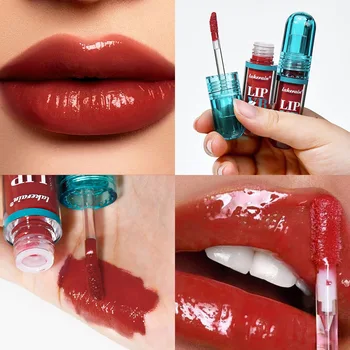 Mirror Gloss Serum Lip Glaze Metal Brush Head Glassy Water Light Lip Tint Oil Plumping Lipstick Moisturizer Non-sticky Makeup